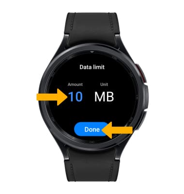 2. Select the amount or unit, then scroll to and select the desired data limit. Select Done when finished.
