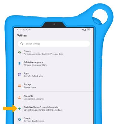 1. Bedtime mode mutes calls, alerts and other sounds during the scheduled bedtime hours. From the Settings screen, scroll to and select Digital Wellbeing & parental controls.