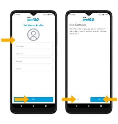 7. Enter the watch wearer's details, then select Next. Review the Guest "secondary" user prompt, then select the desired option.
