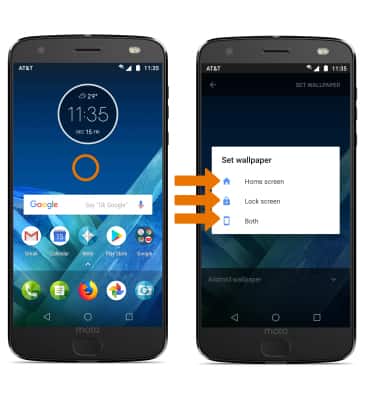 - SET WALLPAPER: Select and hold any empty space on the home screen > Wallpapers > navigate to and select the desired wallpaper > SET WALLPAPER > desired option (Home screen, Lock screen, or Both).
