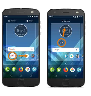 - ADD/REMOVE A FOLDER TO THE HOME SCREEN: Select and drag the desired app over another app, then release. To remove, select and drag the folder to Remove at the top of the screen.