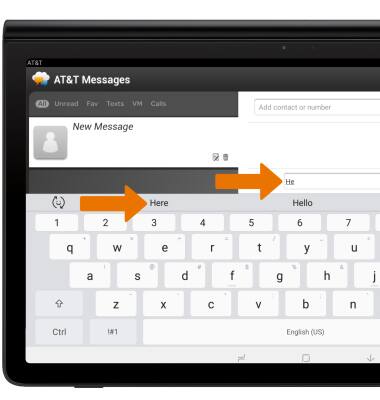 • AUTO-COMPLETE SUGGESTIONS: When typing a word, three suggestions will appear a the top of the keyboard. Select the desired suggestion to enter it into the text field.