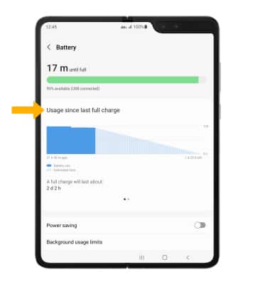 4. Battery usage information will be displayed. To view more details about the device's battery usage, select Usage since last full charge.