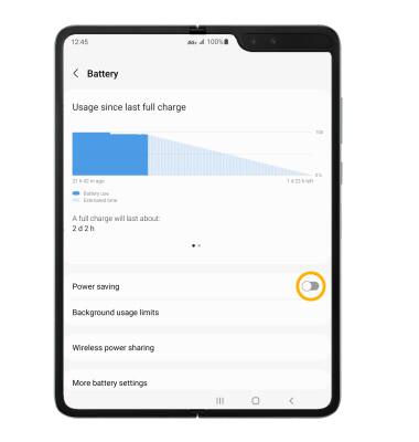 From the Battery screen, select the Power saving mode switch. Select Power saving mode to adjust the device's power saving options.