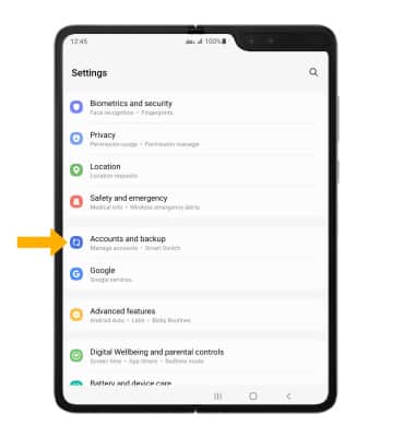 1. From the Settings screen, scroll to and select Accounts and backup.