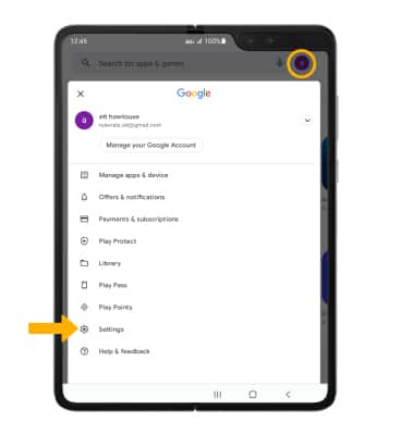 Play Store app > Account icon > Settings.