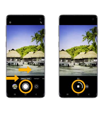 The photos and videos taken using Single Take will be displayed as a collection. To view the collection, from the Camera app, select the Gallery icon.