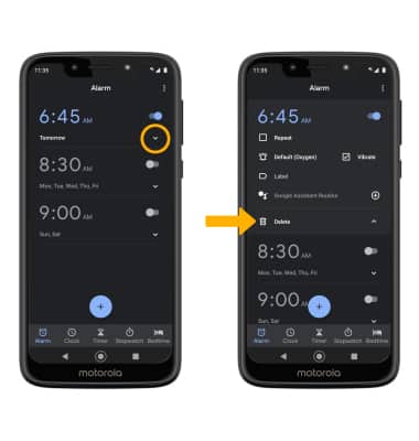 Select the drop-down icon next to the desired alarm, then select Delete.