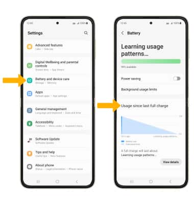 2. Scroll to and select Battery and device care > Battery > battery usage information will be displayed.