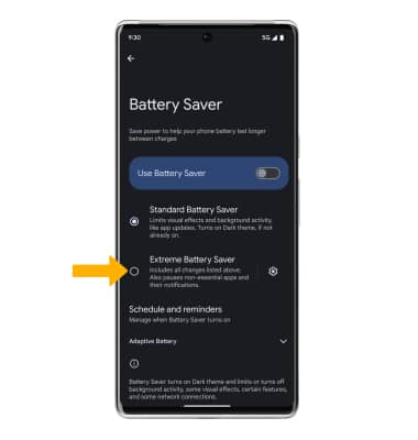 Extreme Battery Saver helps you increase battery life by up to 48 hours by using your device less and limiting app usage. To enable, from the Battery Saver screen, select Extreme Battery Saver.