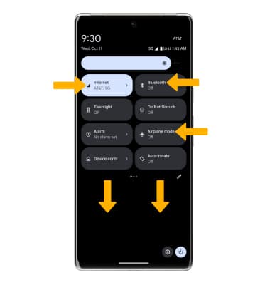 Swipe down from the Notification bar with two fingers to access Expanded Quick Settings. Select Bluetooth to disable bluetooth. Select Internet then select the Wi-Fi switch to disable Wi-Fi. If you are traveling and do not have access to mobile or Wi-Fi networks, select Airplane mode.