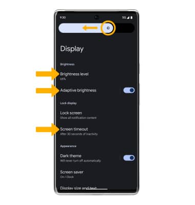 • DECREASE SCREEN TIMEOUT: Select Screen timeout, then select the desired option.