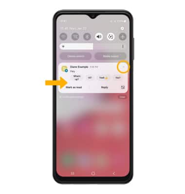 To block or unblock notifications from appearing when the device is locked, from the Notifications screen, select Lock screen notifications then select the Lock screen notifications switch.