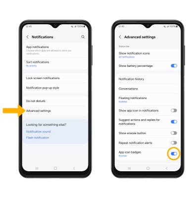 From the Notifications screen, select Advanced settings then select the App icon badges switch to turn notification badges on or off.