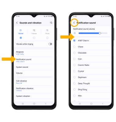 2. Select Notification sound. Select the desired notification sound, then select the back arrow.