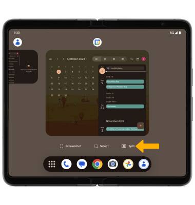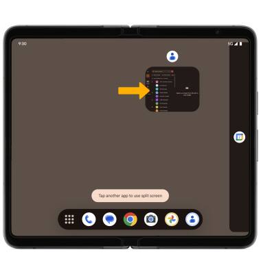 Importante: para esta demostración, se usaron las aplicaciones Contacts y Calendar. Si deseas usar la pantalla dividida con una aplicación que no es un aplicación usada recientemente, deslízate hacia arriba desde la parte inferior de la pantalla > selecciona el ícono Apps tray > selecciona el ícono de la aplicación deseada.