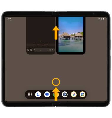 Desliza hacia arriba desde la parte inferior de la pantalla y sigue oprimiendo. Desliza la pantalla dividida hacia arriba para eliminar.