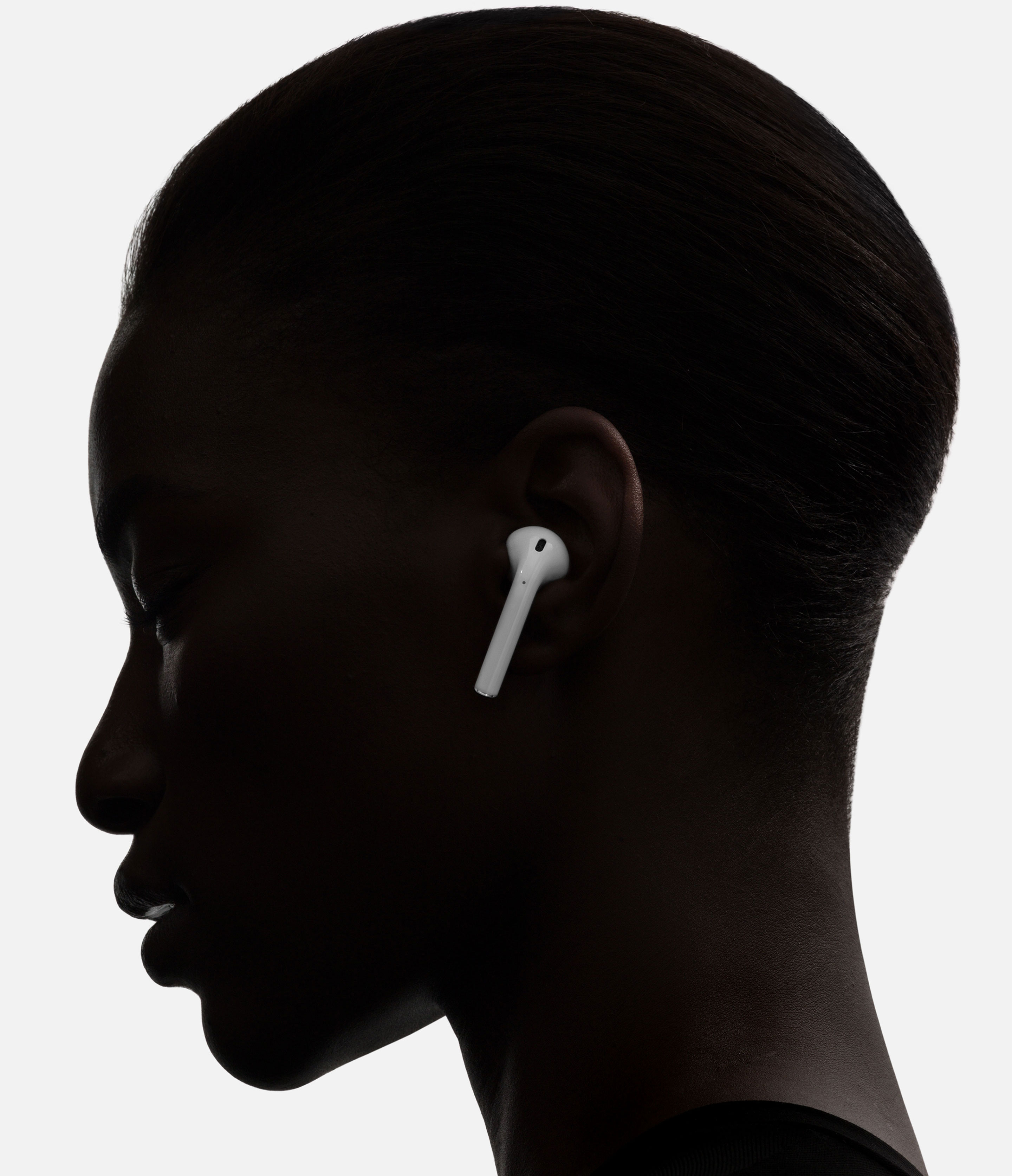 It's great-sounding music, movies, and more to your ears. AirPods provide rich, high-quality AAC audio. And when you want to be heard, dual beamforming microphones filter out background noise when you make calls or talk to Siri.