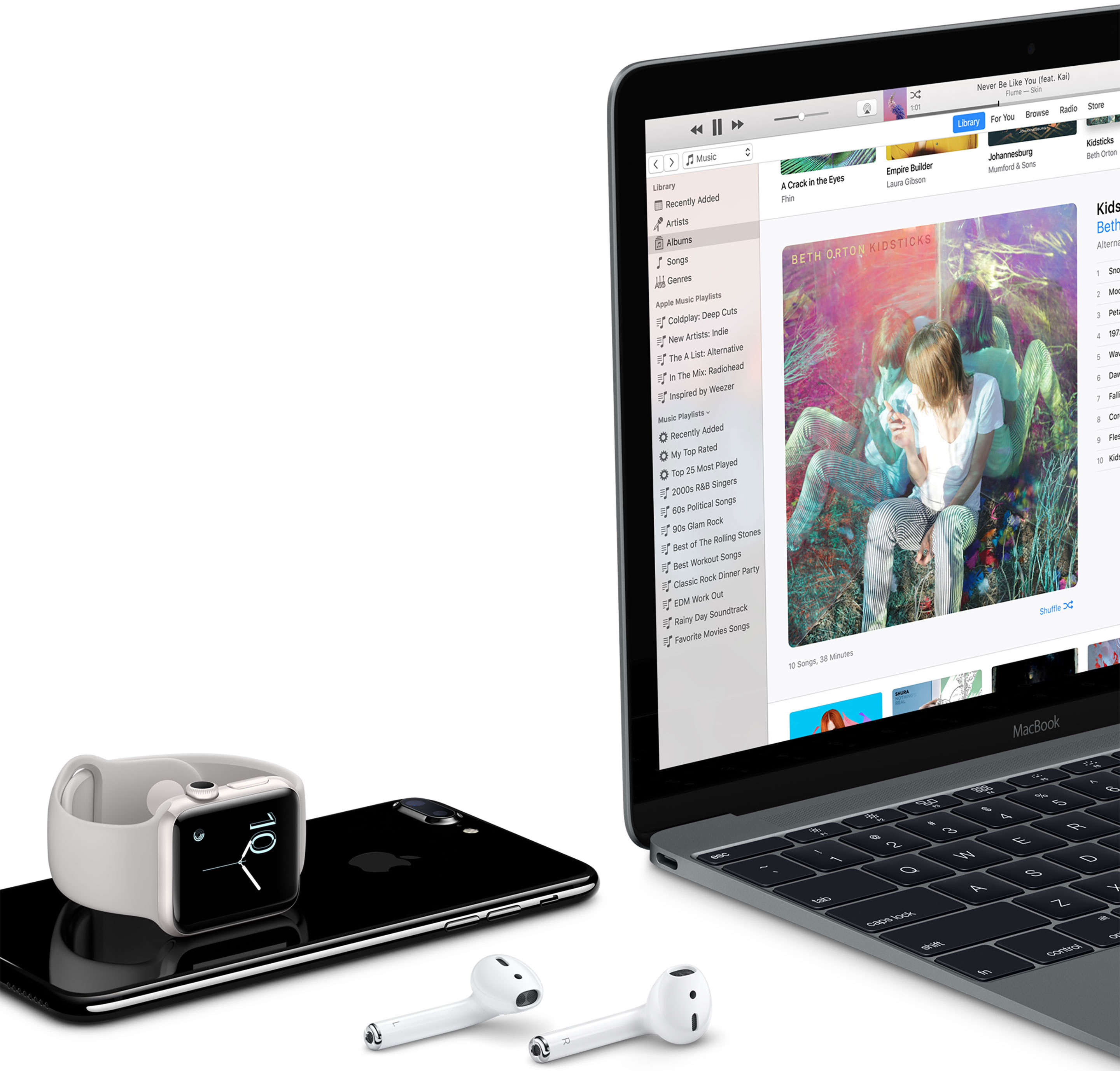 AirPods connect automatically with all your Apple devices. They're simultaneously connected to your iPhone and Apple Watch, and sound switches instantly between the devices. Want to listen to your Mac or iPad? Just choose AirPods on those devices.1
