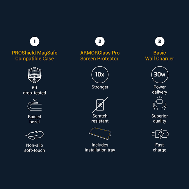 Get a PROShield case, a wall charger, and a screen protector for your Samsung Galaxy Z Fold7—all in one. Incredibly thin and lightweight, the case is made from high-quality soft silicone rubber gel that’s easy to grip. The tempered glass screen protectors will give you peace of mind against marks and scratches. And the 30W wall charger has a smart chip, which will provide quick power when you need it.