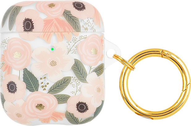 Pretty, meet practical. Keep track of those AirPods (and keep them looking good) with a protective case with no-slip grip, an opening for easy charging, and a gold ring for hooking onto bags or keys.