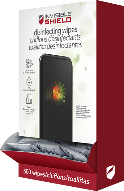 InvisibleShield Disinfecting Wipes! Keep your device surfaces 99.99% bacteria free.