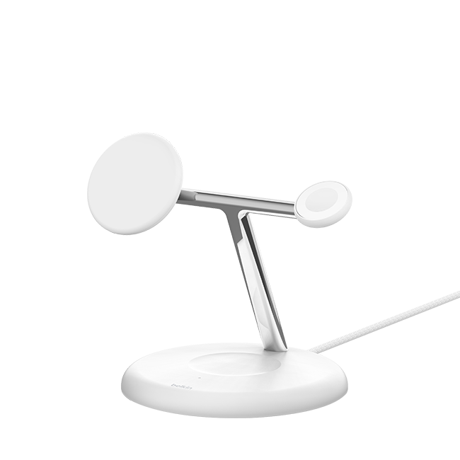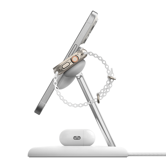 This next generation of our popular 3-in-1 stand features Qi2 compatibility, adjustable tilt for the magnetic iPhone pad, and a smaller base. Get up to 2x faster wireless charging for your iPhone 15/14/13/12, 5W to your Apple Watch, and 5W to your AirPods. Leveraging magnetic Qi2 technology, the secure, aligned connection optimizes energy usage and safeguards your device's battery life.