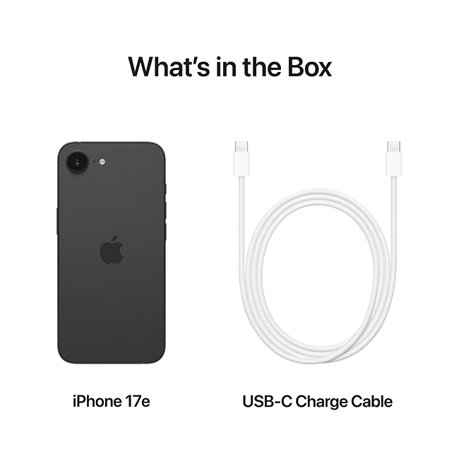 iPhone 17e features a beautiful 6.1-inch Super Retina XDR display,1 the fast and capable A19 chip, all-day battery life,2 and 256GB starting storage.