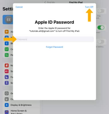 Find My iPad switch then enter your Apple ID password and select Turn Off.