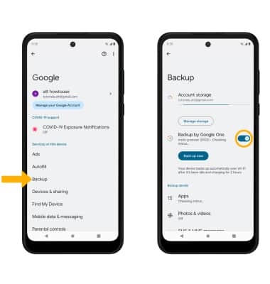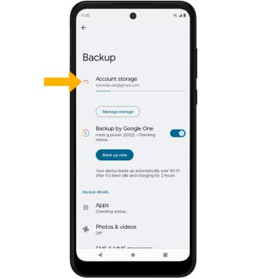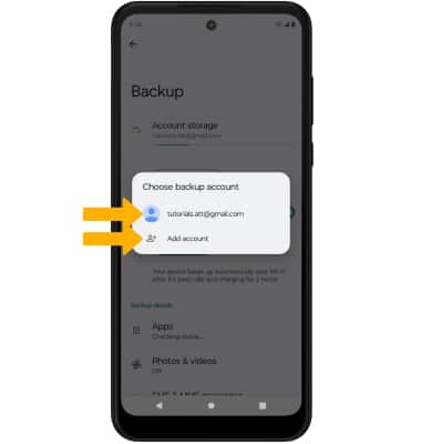 5. Select the desired backup account option or select Add account to add a new backup account. When you add your Google account to a device, the data that you previously backed up for that Google account is restored to the device.