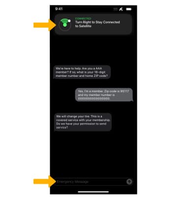 2. The emergency relay center that you are connected with may ask for more information. Keep your phone pointed at the satellite displayed at the top of your Messages app. Enter the desired message.