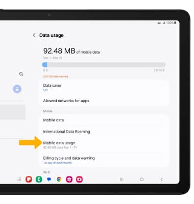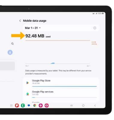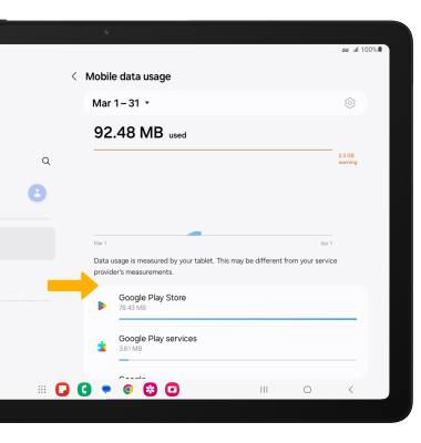 Data usage broken down by application will be displayed at the bottom of the Mobile data usage screen.