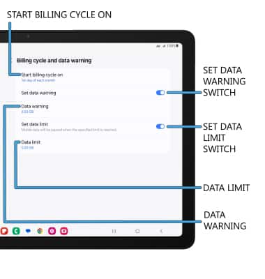 • ENABLE/DISABLE DATA LIMIT: Select the Set data limit switch.