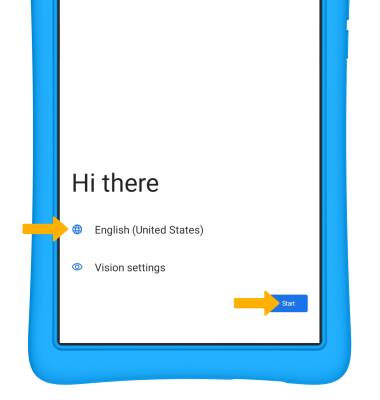 1. When turning the device on for the first time, or after a factory reset, you will be walked through a series of prompts to set up your device. Choose the desired language, then select Start to continue.