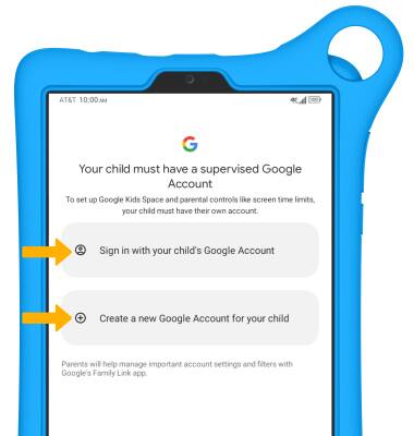 5. Logging into a supervised Google account is required to set up Google Kids Space and parental controls. Select Sign in with your child's Google Account and follow the prompts to sign in with your child's account, or select Create a new Google Account for your child and follow the prompts to create a supervised Google account.