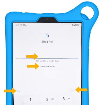 17. If you would like to set your pin, enter the desired pin then select Next. If you would like to use a different type of screen lock, select Screen lock options then select the desired option and follow the on-screen prompts for setup. To proceed without activating device protection features, select Skip.