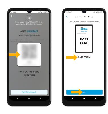 23. Scan the QR code on your tablet, then enter the activation code shown. When finished, select Next.