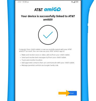 25. When the AT&T amiGO app has been linked to your tablet, you will receive a confirmation on the tablet. Select Start to continue setup.