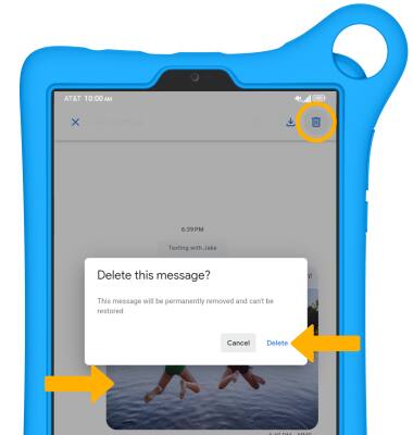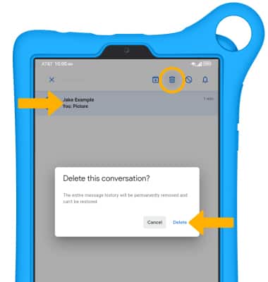 DELETE MESSAGE THREAD: From the Messages screen, select and hold the desired message thread then select the Delete icon. Select Delete again to confirm.