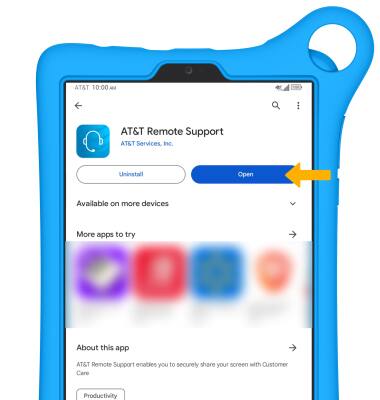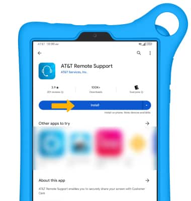 Note: If prompted, review permissions and if you agree select Accept. Apps built for Android 6.0 or later will ask for permissions once you start using them. If prompted, review permissions and if you agree select CONTINUE. Devices with Android 8.0 will also have a "TRY NOW" option, which lets users access an app feature without downloading the full app. If the AT&T amiGO Jr. Tab™ is set up for a child, you will need the parent's account to grant permission to install a new app, depending on your parental control settings. Select the desired option and follow the prompts to grant permission.