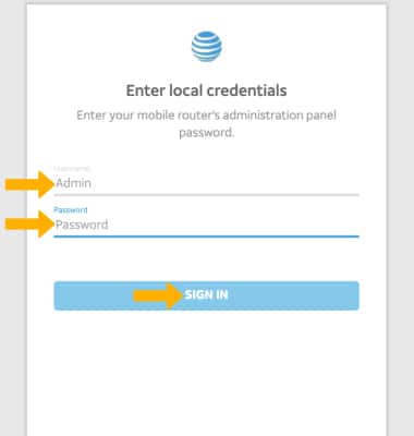 From your device's web browser, go to http://attwifimanager or type 192.168.1.1 into the search bar. Enter your Username and Password, then select SIGN IN.