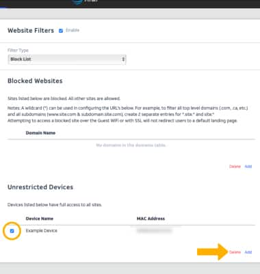 Select the checkbox next to the desired device, then select Delete. Select Apply when finished.
