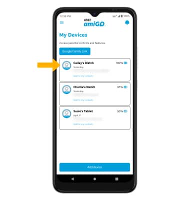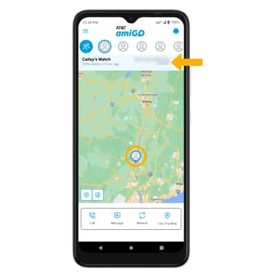 1. To view a device's location, from the AT&T amiGO™ app on your smartphone, select the desired device.