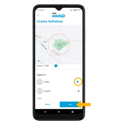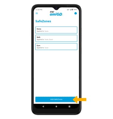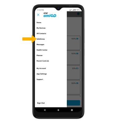 1. Setting SafeZones lets you receive a notification when the device enters or exits a geographical area. From the AT&T amiGO™ app on your smartphone, select the