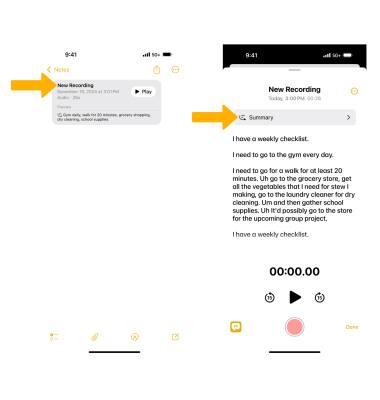 SUMMARIZE VOICE NOTES: From the Notes app, navigate to and select the desired voice note.
