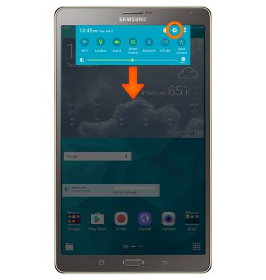 - To view more ring and vibrate settings, swipe down from the Notification bar, and select the Settings icon.