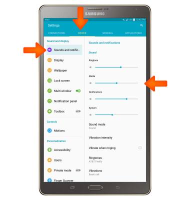 - Select the DEVICE tab then select Sounds and notifications. Drag the sliders to adjust volume as desired.