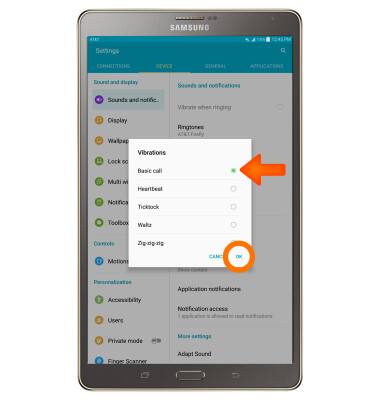 - To change your vibrate pattern, scroll to and select Vibrations > choose your desired pattern > OK.