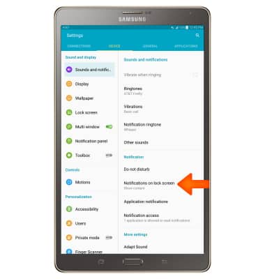 - To change how notification alerts appear when the device is locked, scroll to and select Notifications on lock screen > choose your desired option.