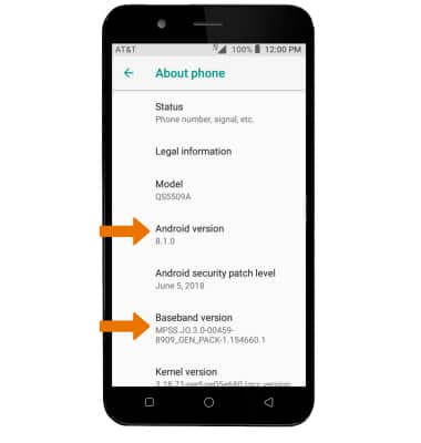 - Scroll down to view the Android version and Baseband version.